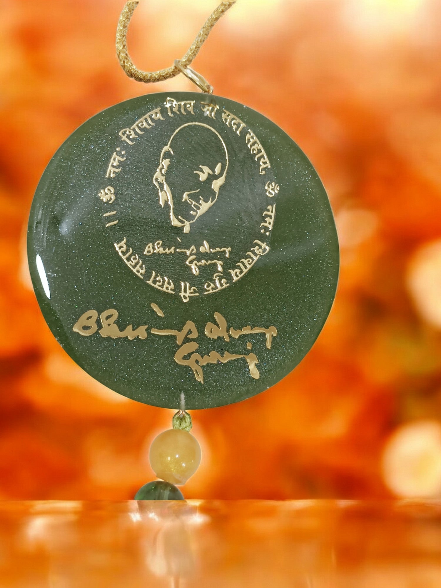 Special handmade " JAI GURU JI " Resin art. Car hanging which can be used in the car or it can be hanged anywhere like in an office or Home.