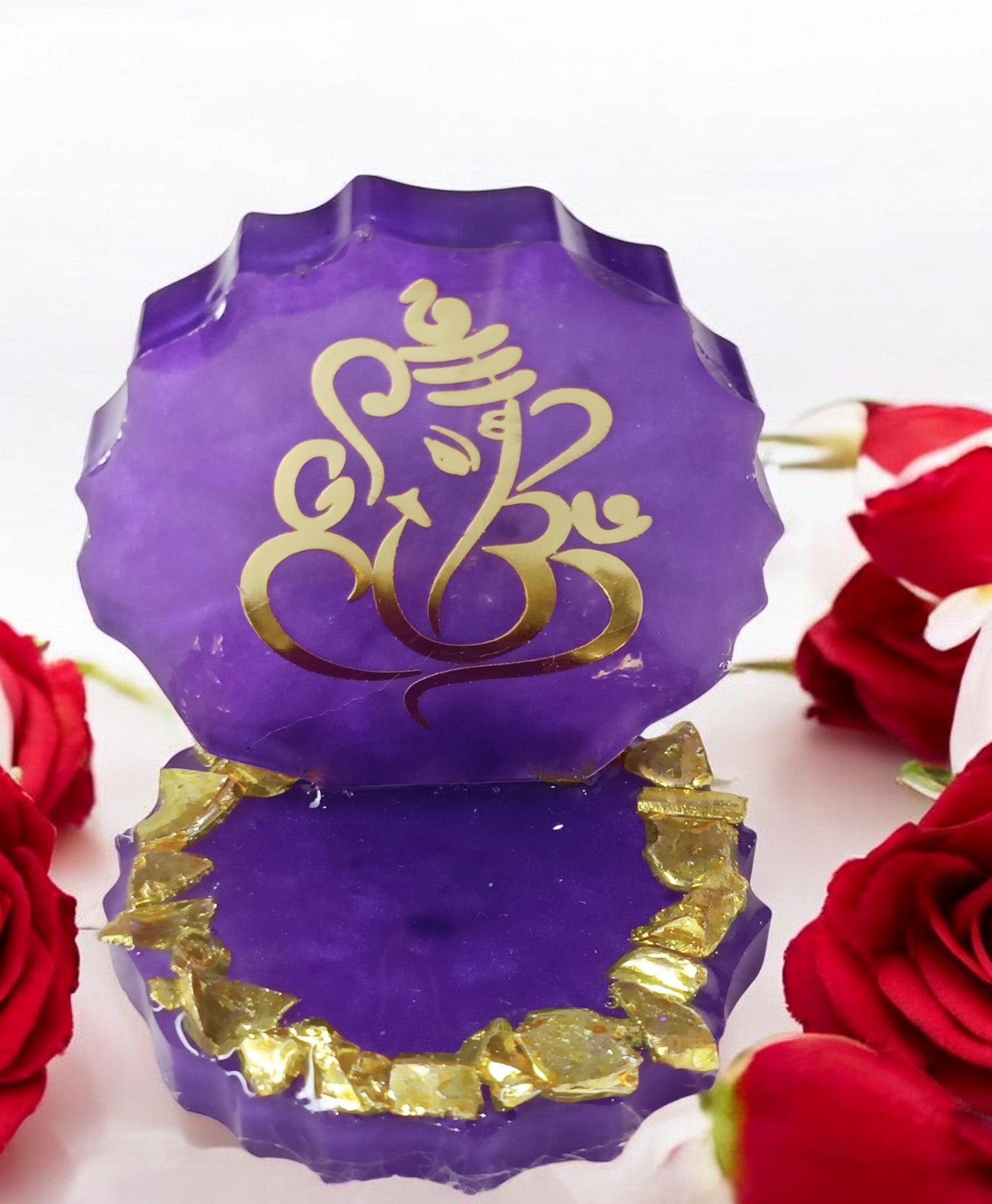 Haute Crafts 2.5 Inch Resin art Handcrafted Premium "Ganesh ji " with Gold Crystal Texture for Car Dashboard, Home Decor, Puja Ghar and Gifting.