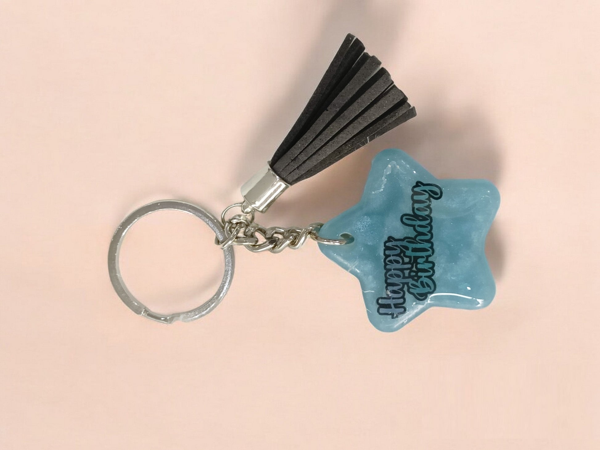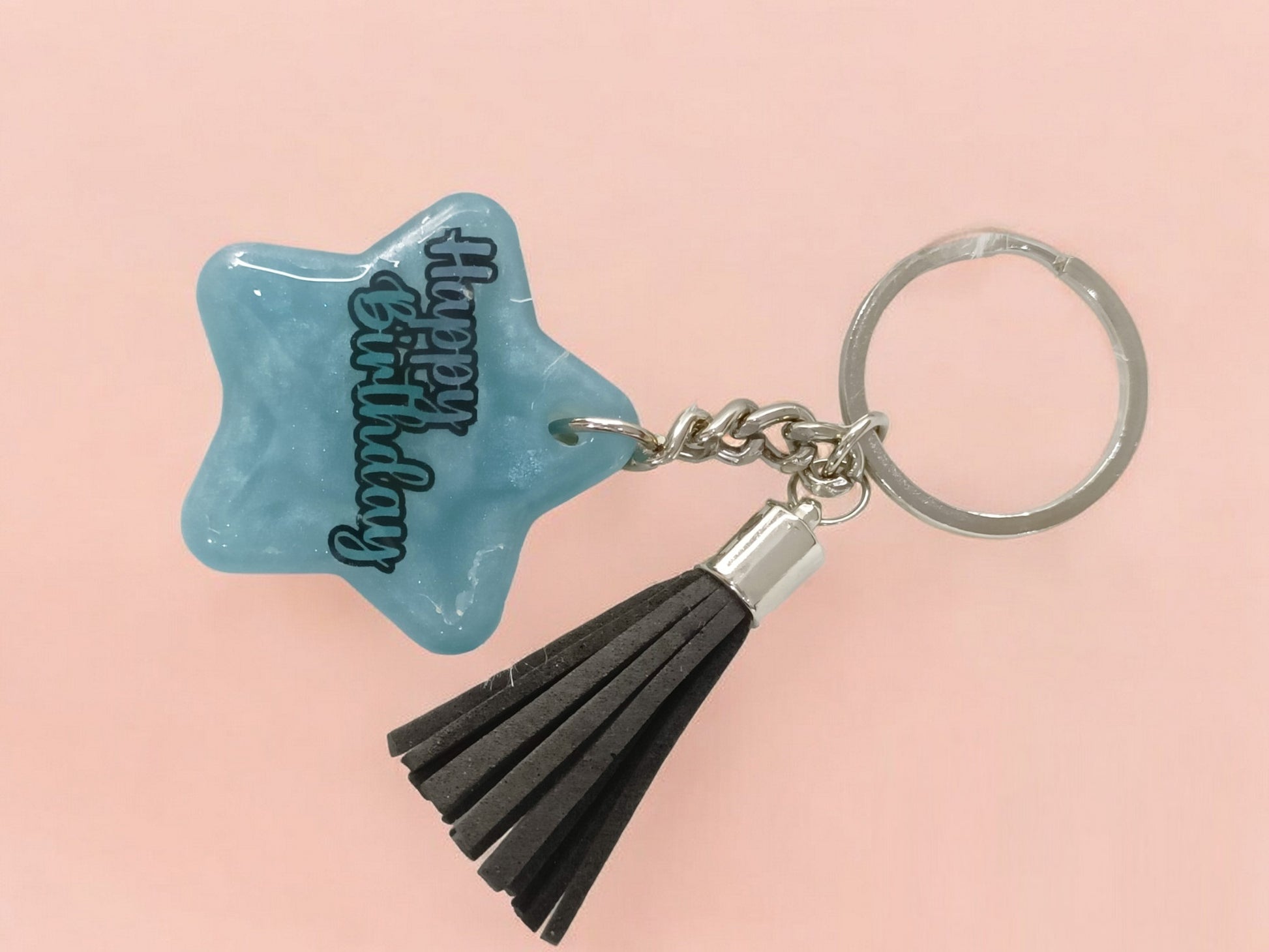 Haute Crafts "Birthday" Theme Keychain - Tassel, Resin Alphabet Initial Letter Keychain Key Ring for Women Girls Purse Handbags, Bike, Car Keyring.Home, Small Gifts