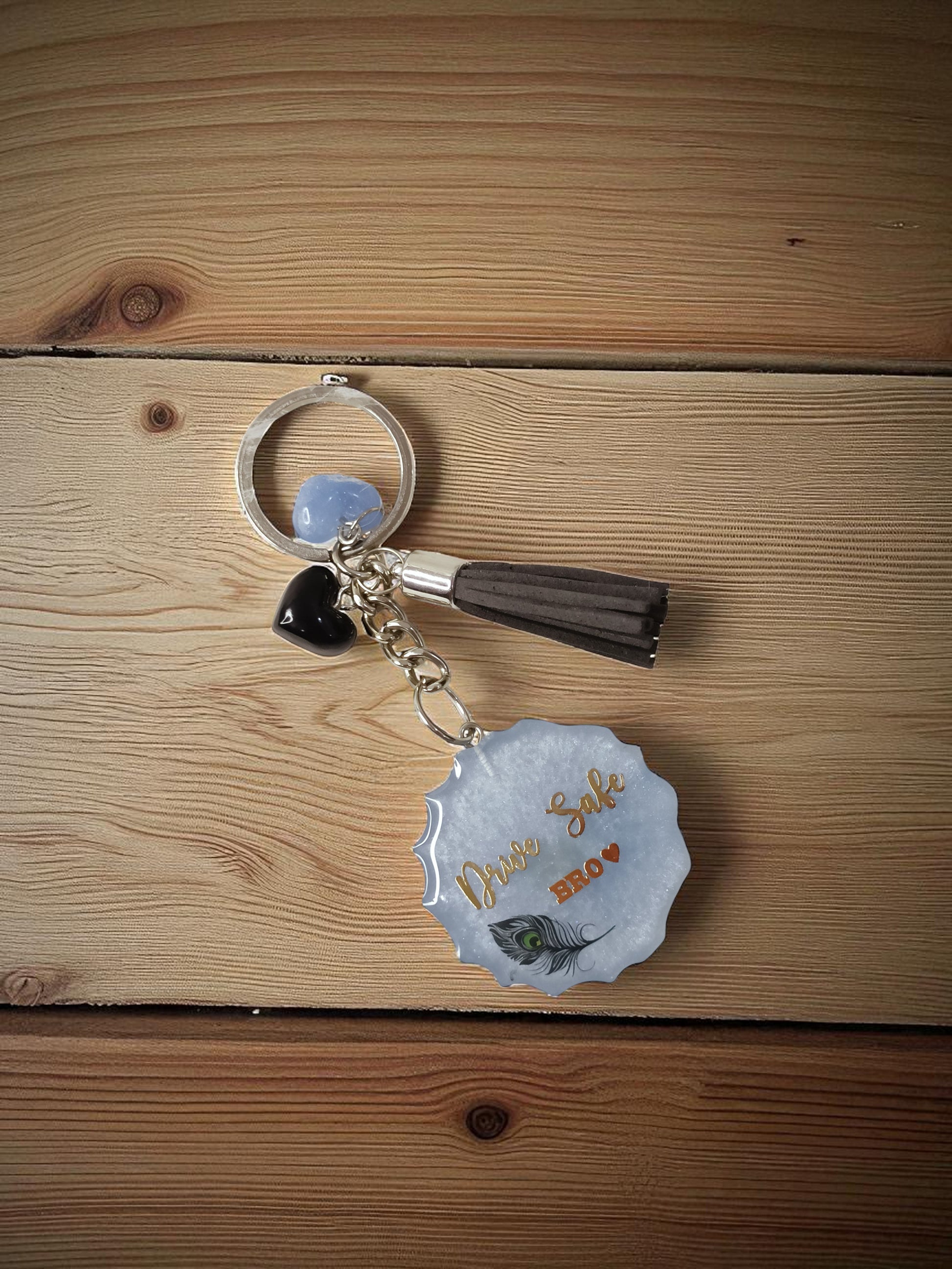 Haute Crafts "Drive Safe Bro" Theme Keychain - Resin Alphabet Initial Letter Keychain Key Ring for Women Girls Purse Handbags, Bike, Car Keyring.Home, Small Gifts
