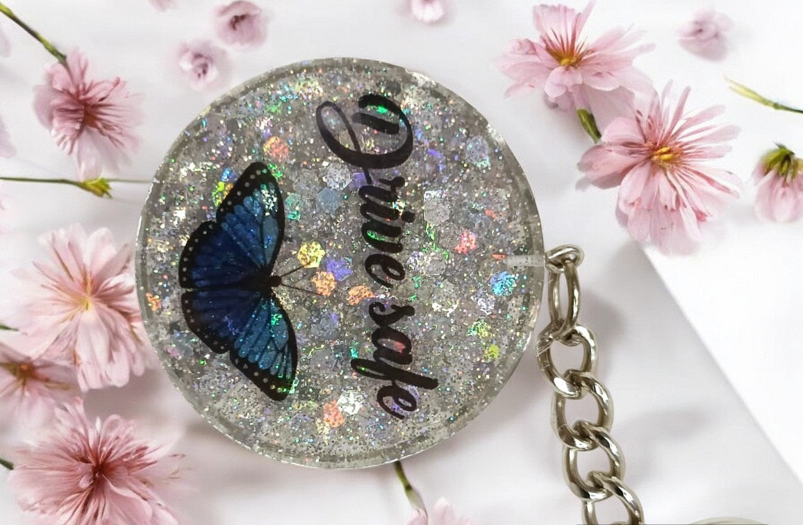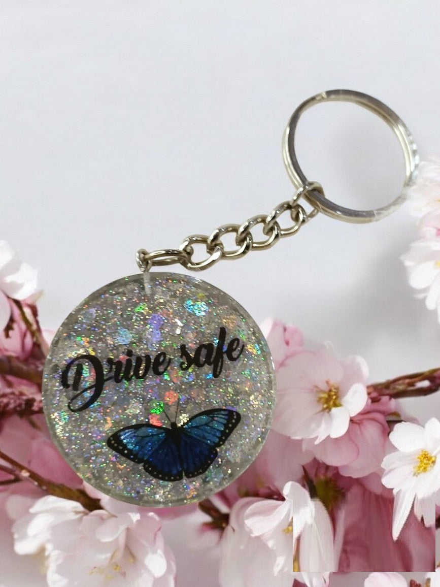 Haute Crafts "Drive Safe Theme Keychain - Resin Alphabet Initial Letter Keychain Key Ring for Women Girls Purse Handbags, Bike, Car Keyring.Home, Small Gifts