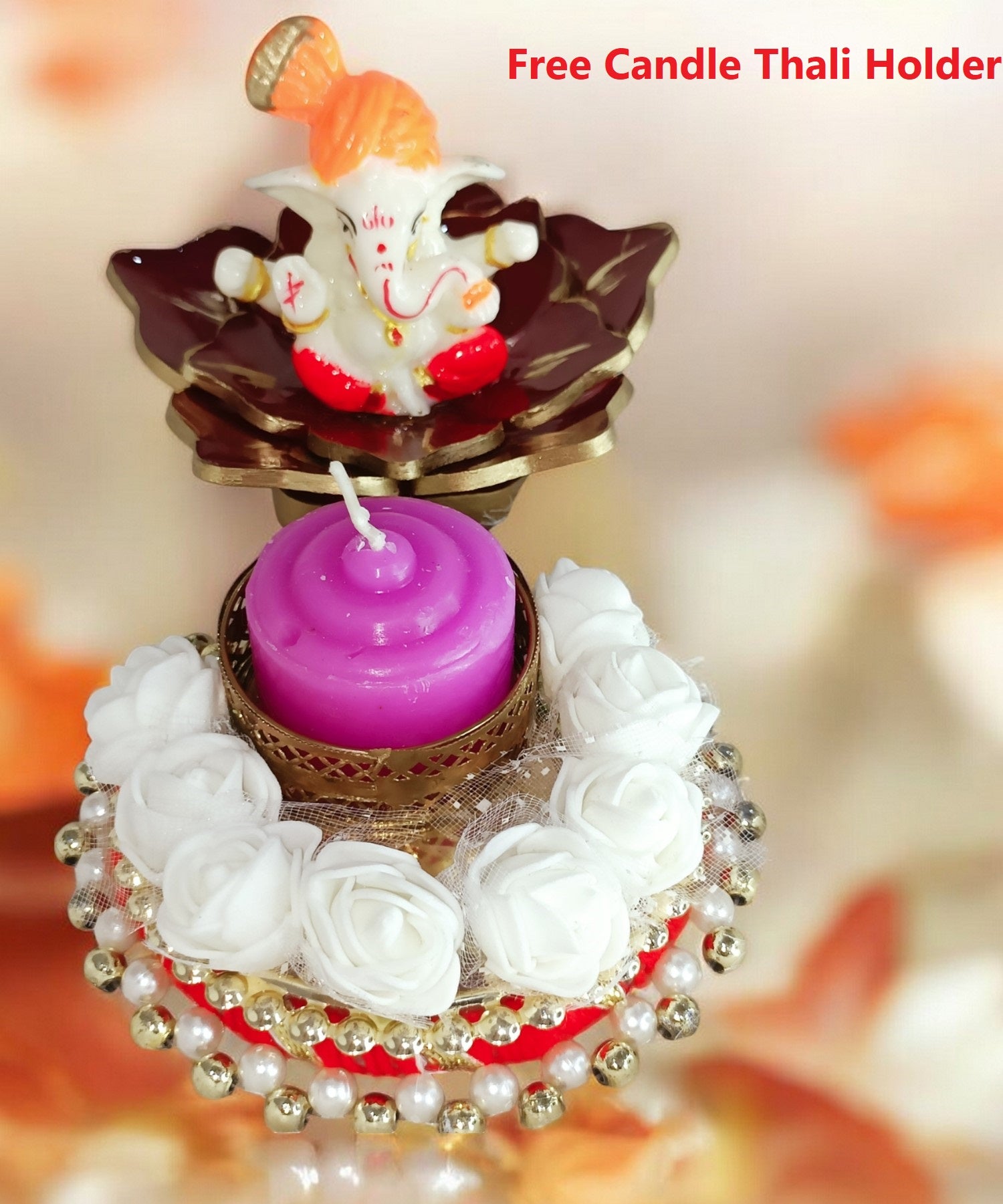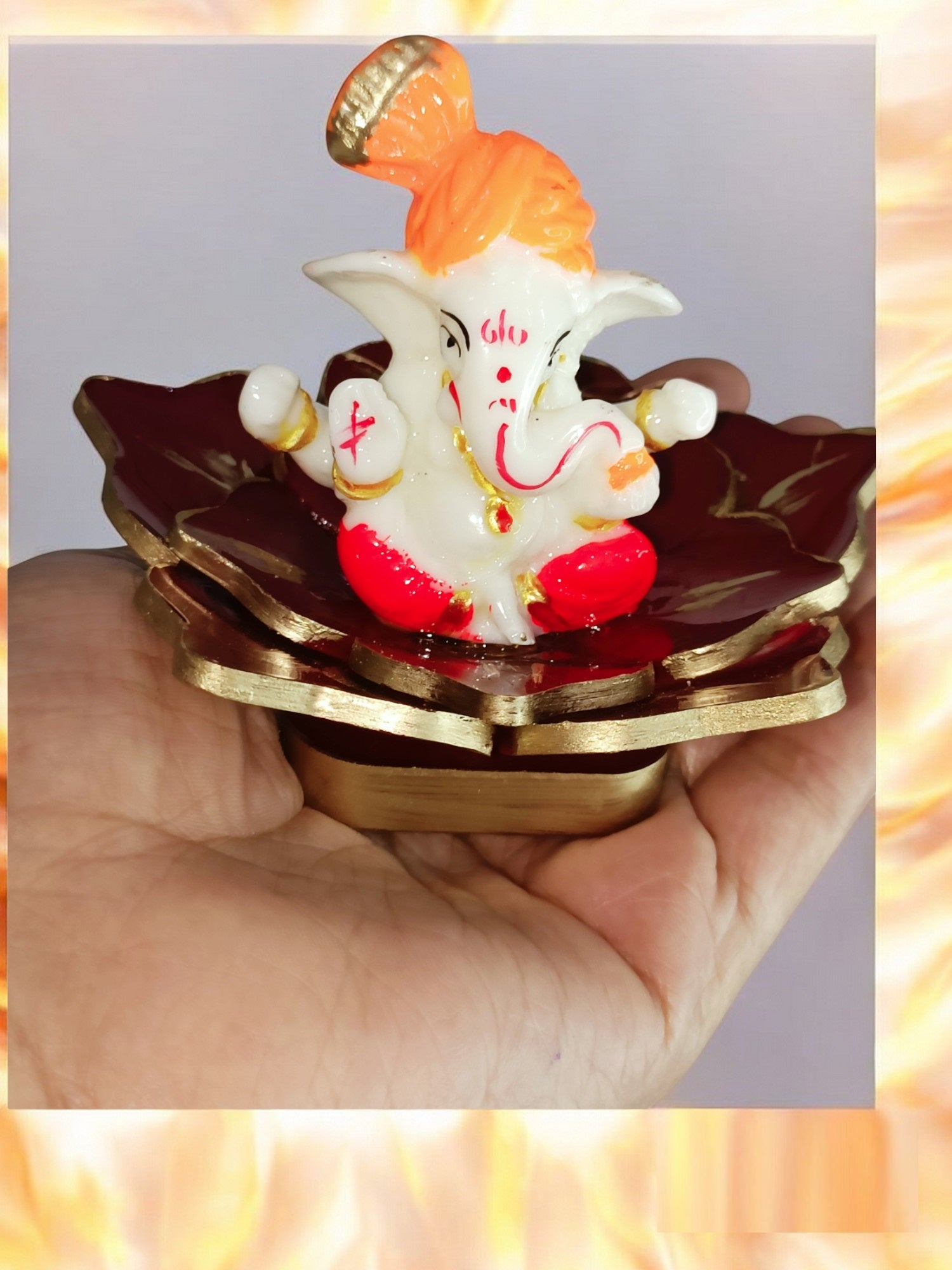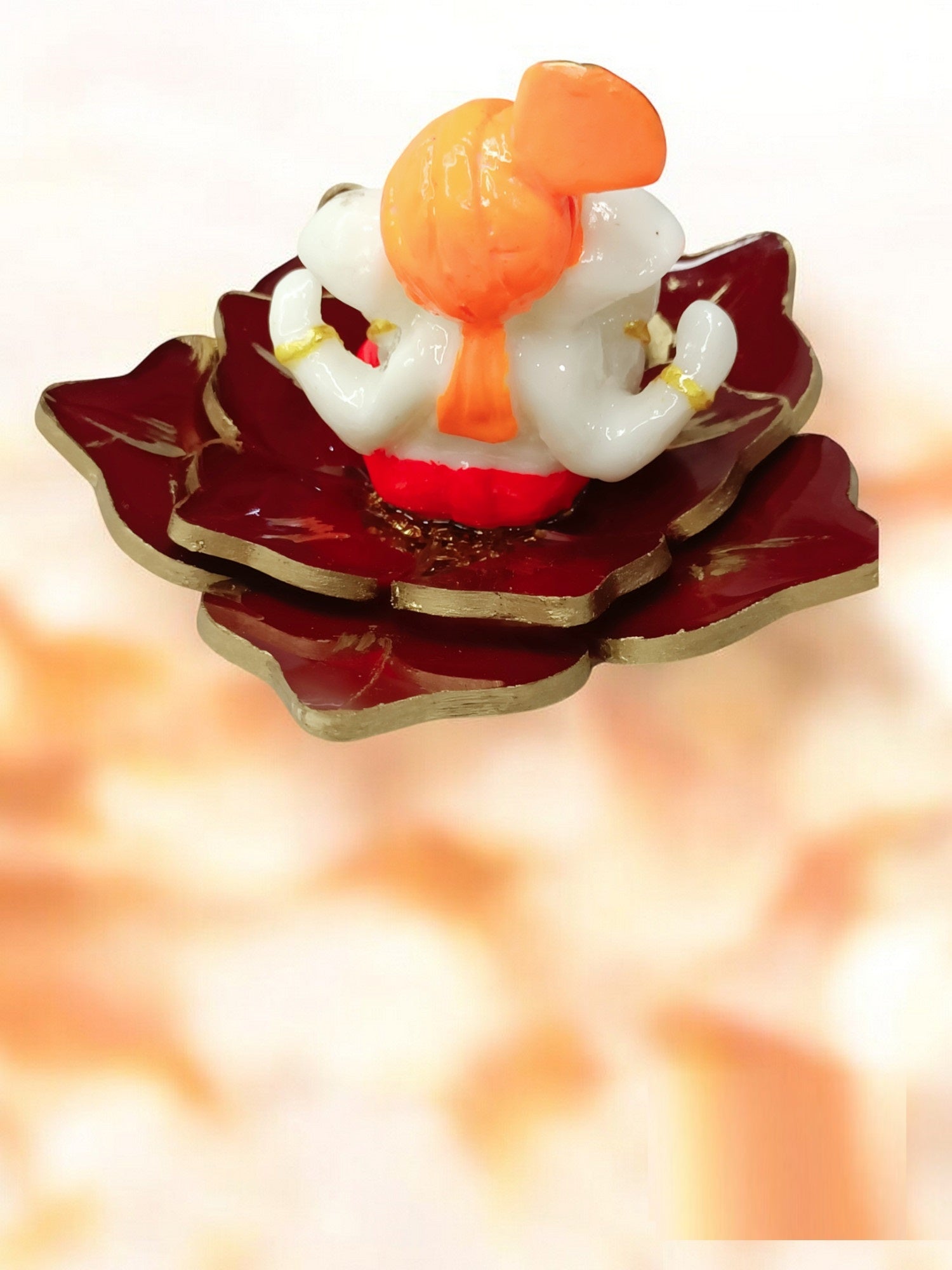 Haute Crafts Ganesh Idol Murti with Resin 3d Flower Statue for Car Dashboard Gift Lord Ganesha Ganpati Idols Showpiece Figurine for Home Pooja Room Diwali Decoration., Resin