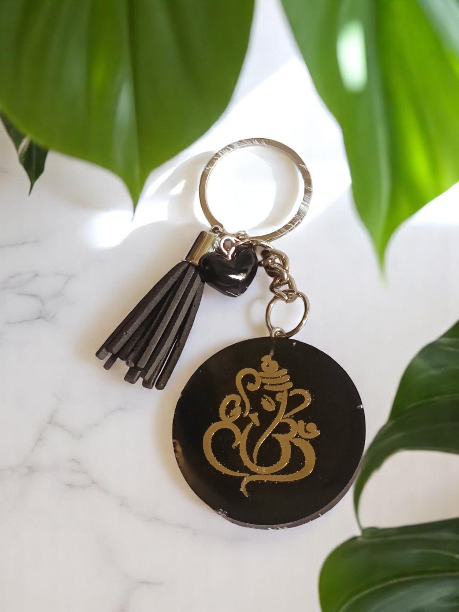 Haute Crafts Ganesh ji Theme with Tassel ,Resin Keychain Key Ring for Women, Girls Purse ,Handbags, Car, Bike.