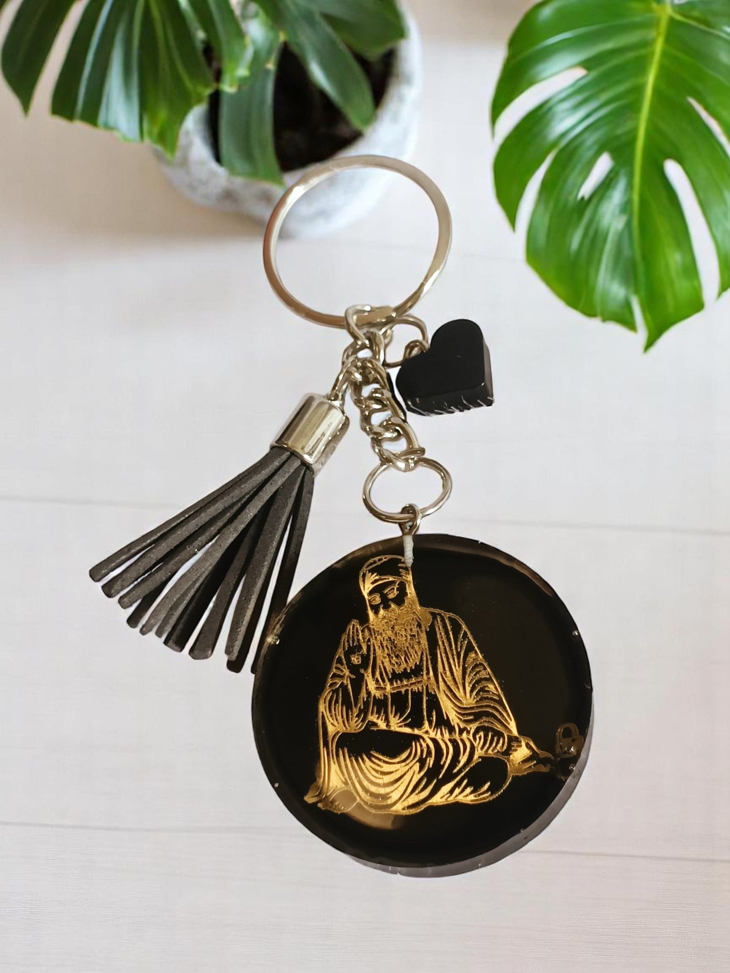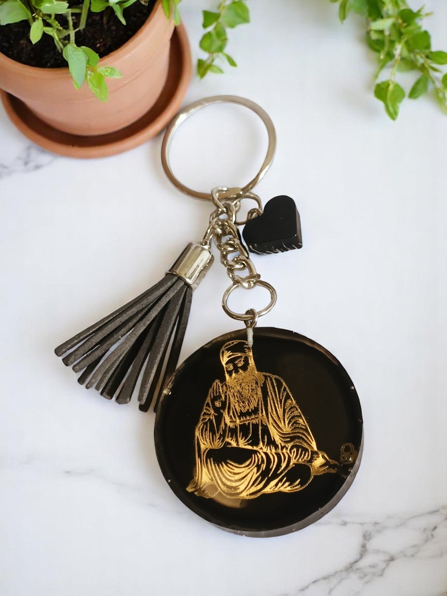 Haute Crafts Guru Nanak ji Theme with Tassel & Heart ,Resin Keychain Key Ring for Women, Girls Purse ,Handbags, Car, Bike.