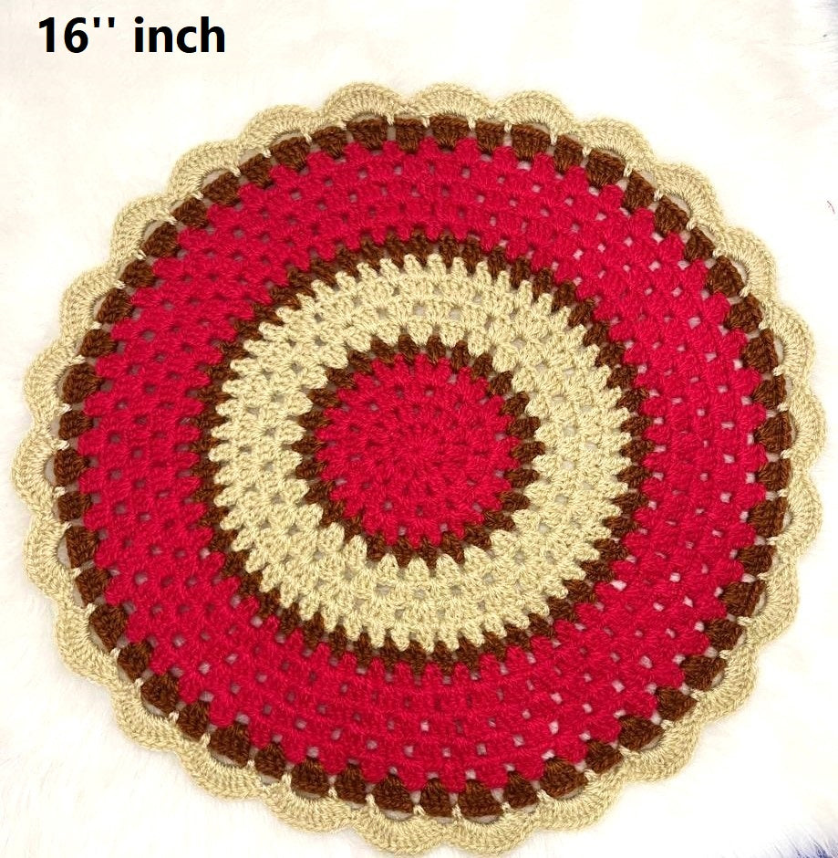 Handcrafted Elegance: This 16 Inches round doily is meticulously crocheted by skilled artisans, showcasing intricate detailing and a delicate, lace-like pattern.