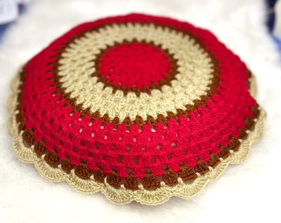 Haute Crafts Handcrafted Crochet Thalposh, Woolen Puja Thali Cover for Temple, Thal Posh Plate Cover (Multicolor, 16'' Round)