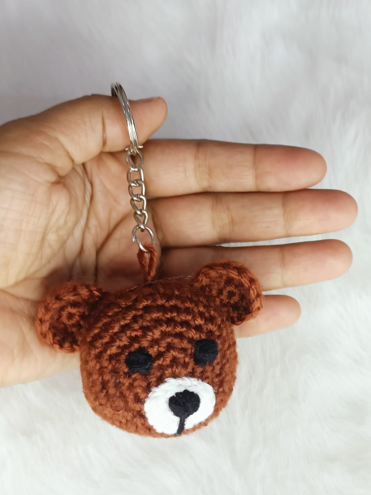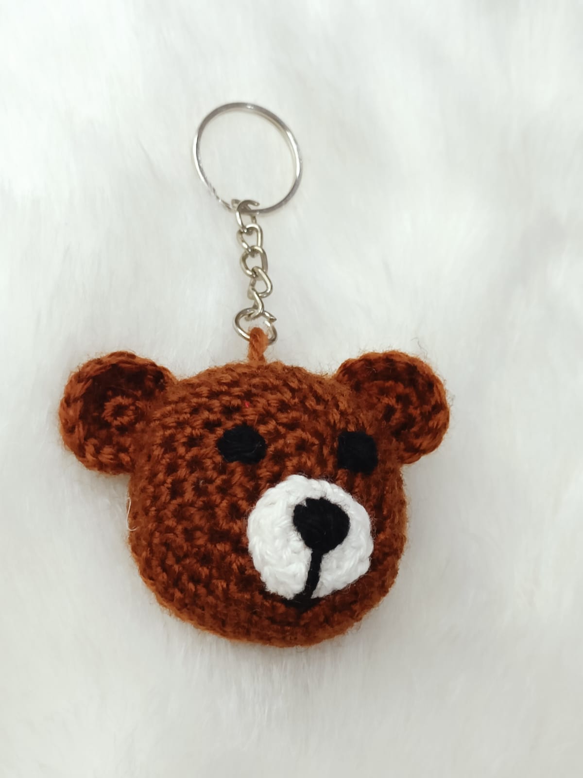 Haute Crafts Handmade Crochet Brown Teddy Bear Keychain (Washable Keychain)