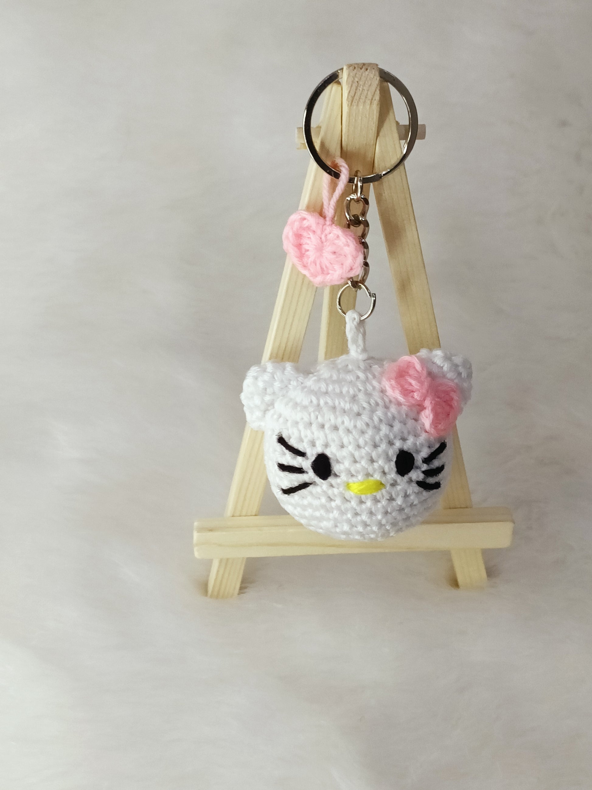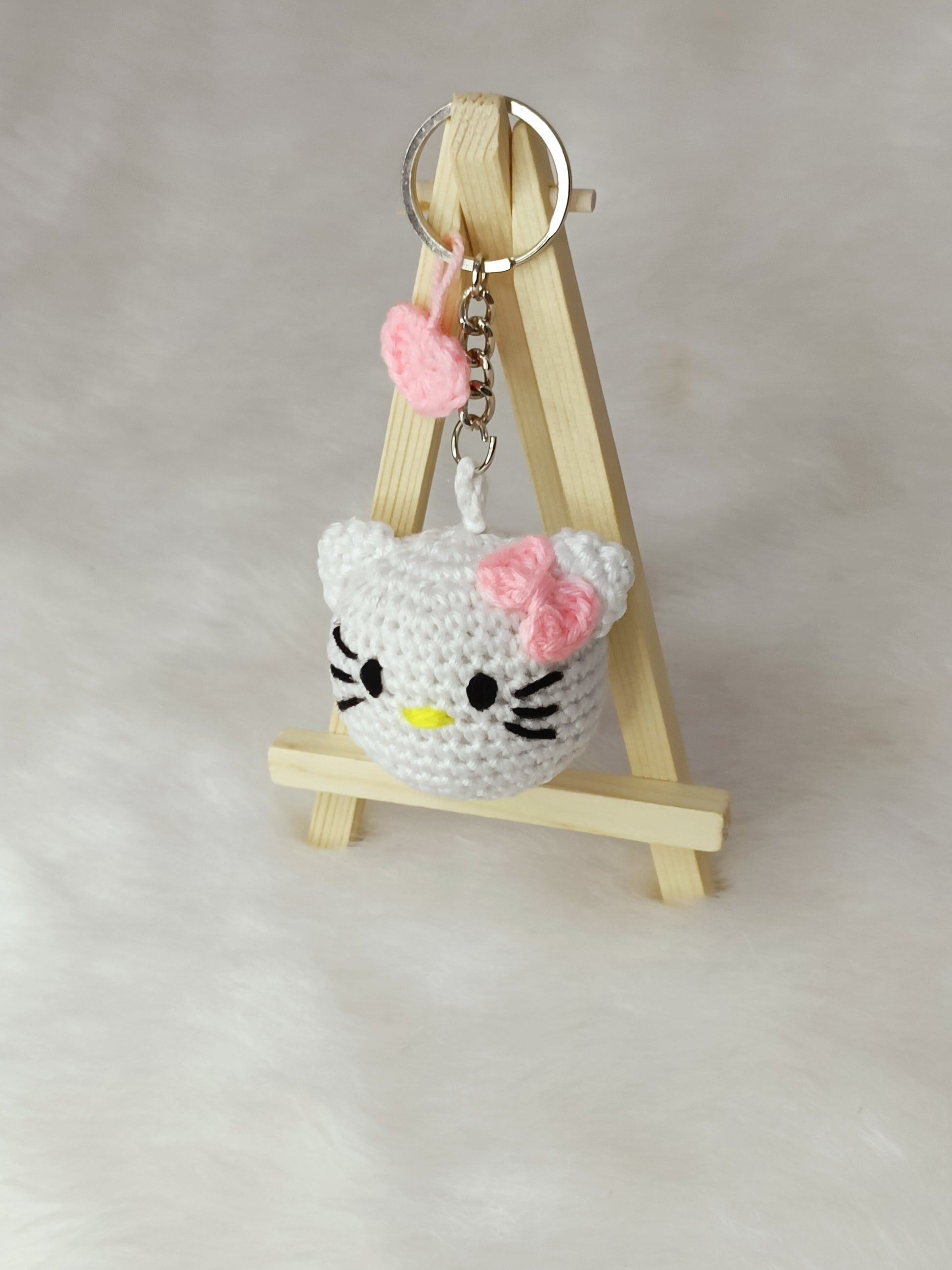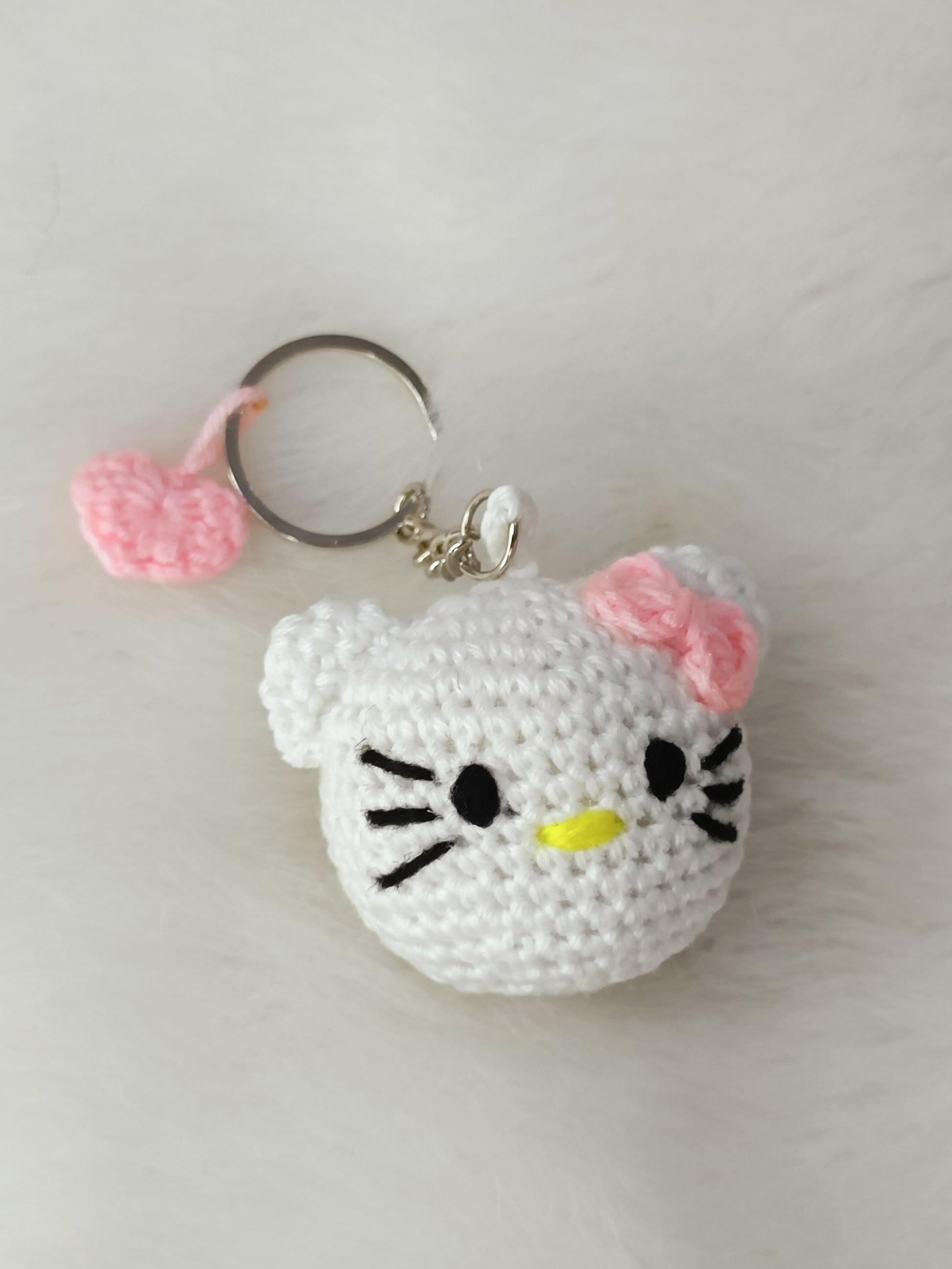 Design: Featuring the endearing Cute Kitty, this handmade crochet plush keychain captures the timeless charm of the beloved character in a cute and huggable form. Meticulously crafted with the artistry of handmade, each keychain is a unique creation, showcasing the skill and passion of the artisan.