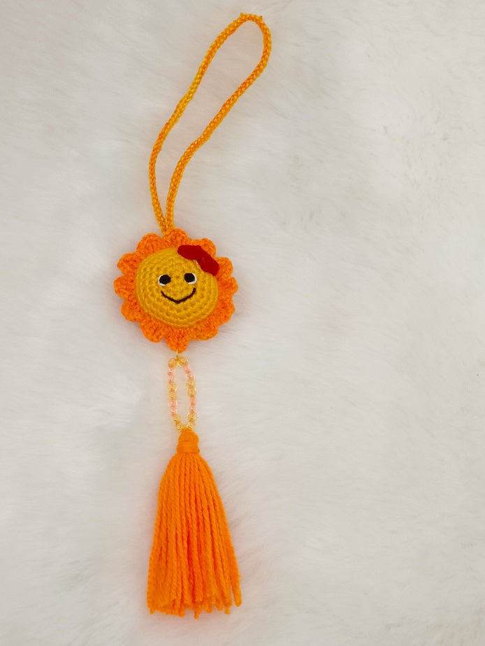 Special handmade " Crochet Cute Smiling Sun Car/Window Hanging /Keychain.