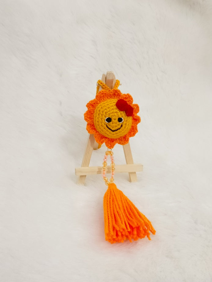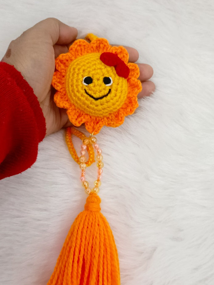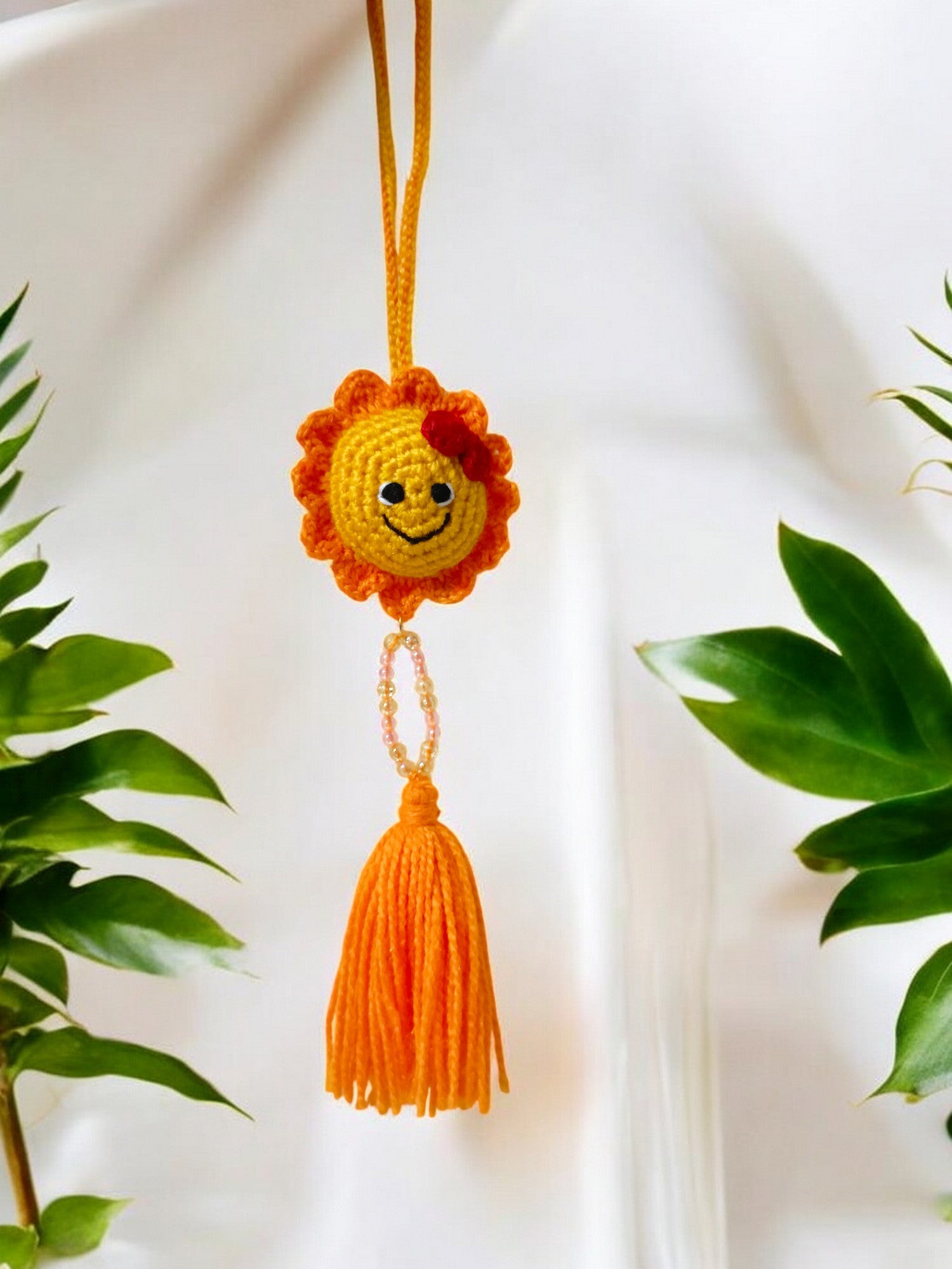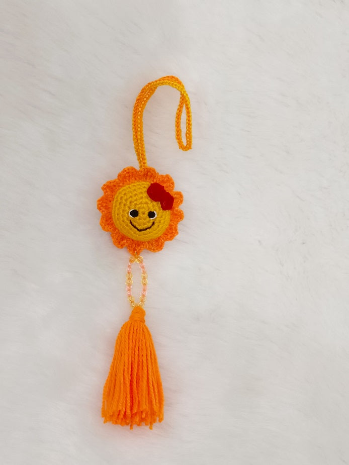 Haute Crafts Handmade Crochet Cute Smiling Sun Car/Window Hanging /Keychain (Washable Keychain)