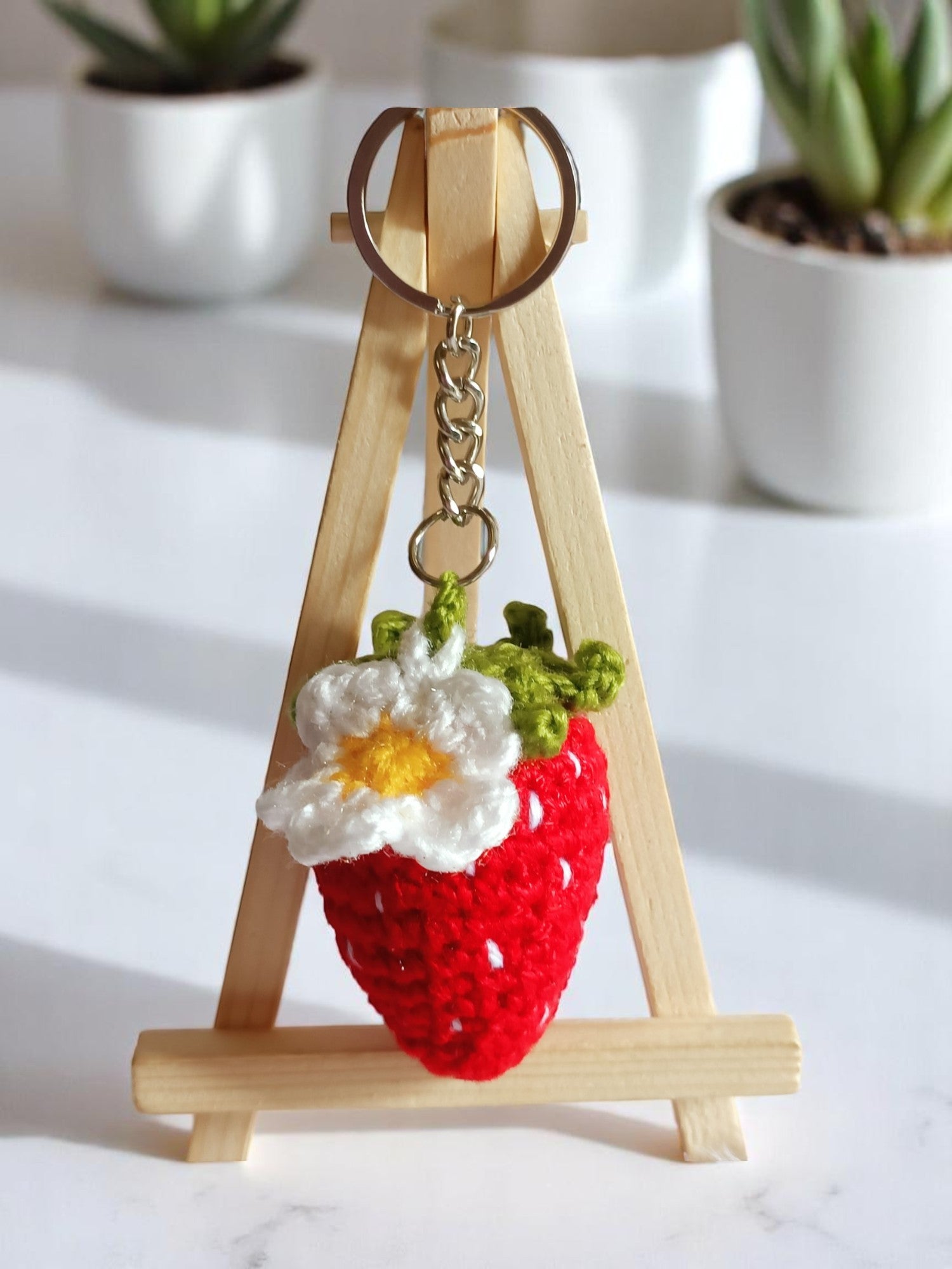 •Charming Cute Handmade Crochet Cute Strawberry Design: Featuring the endearing Cute strawberry, this handmade crochet plush keychain captures the timeless charm of the beloved character in a cute and huggable form. Meticulously crafted with the artistry of handmade, each keychain is a unique creation, showcasing the skill and passion of the artisan.