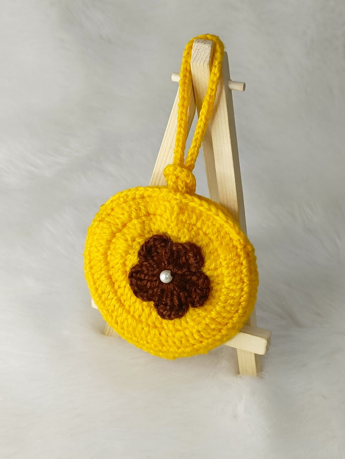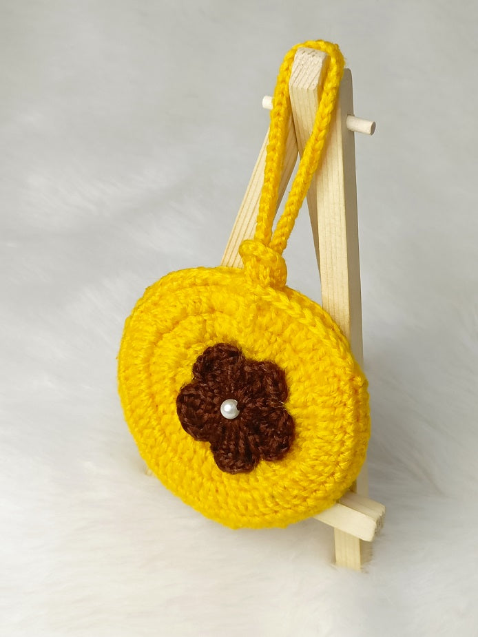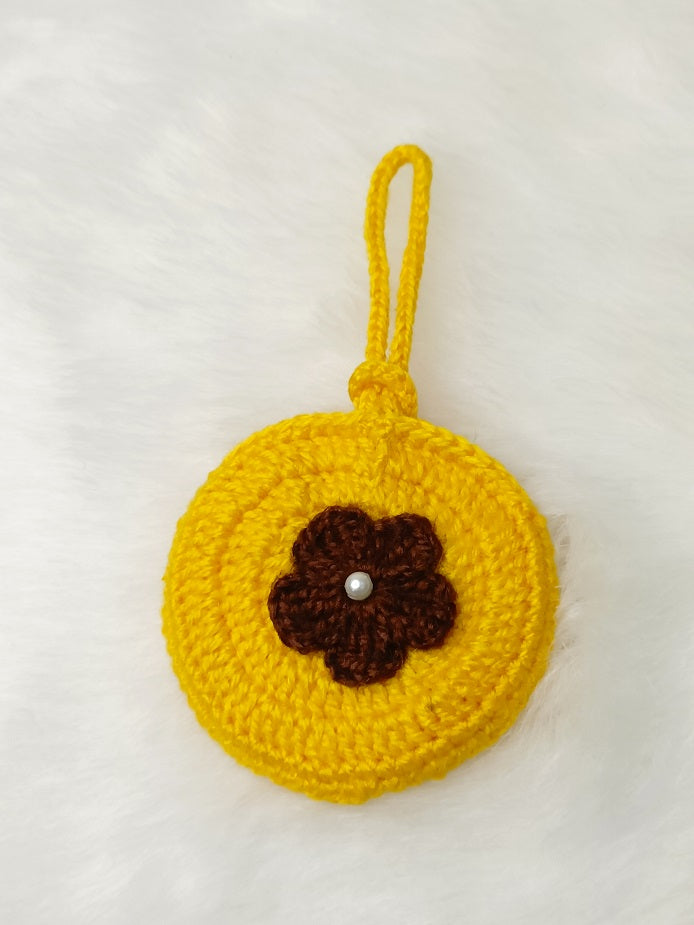 Haute Crafts Handmade Crochet Pouch with Flower Design, Crocheted Earphone Pouch, Small Things & Multi Purpose Pouch, (Yellow)
