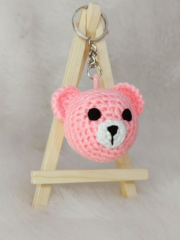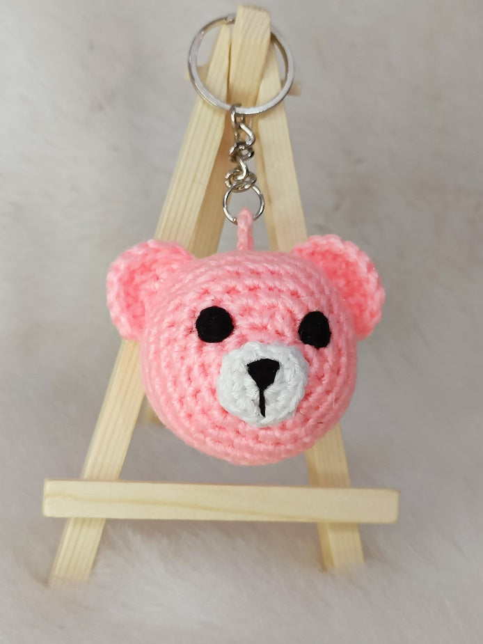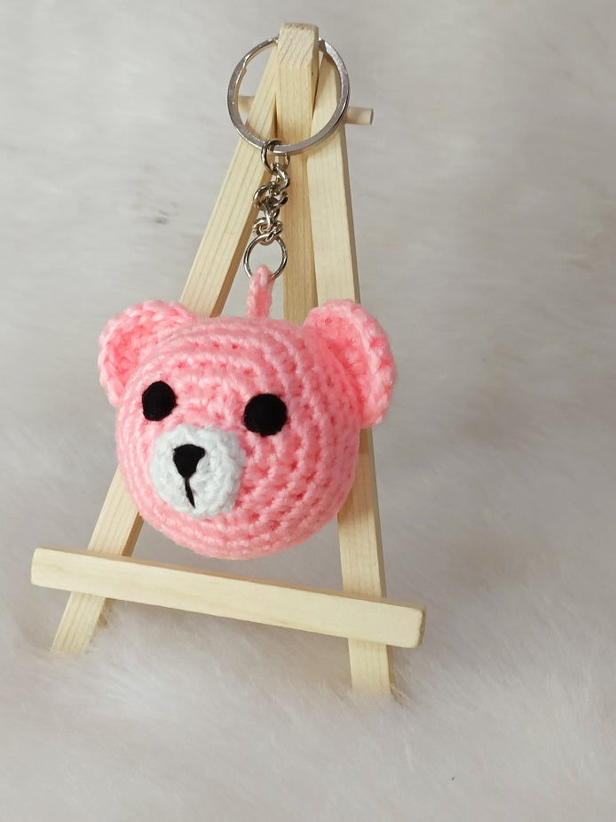 Haute Crafts Handmade Crochet Teddy Bear Keychain (Washable Keychain) Light Pink