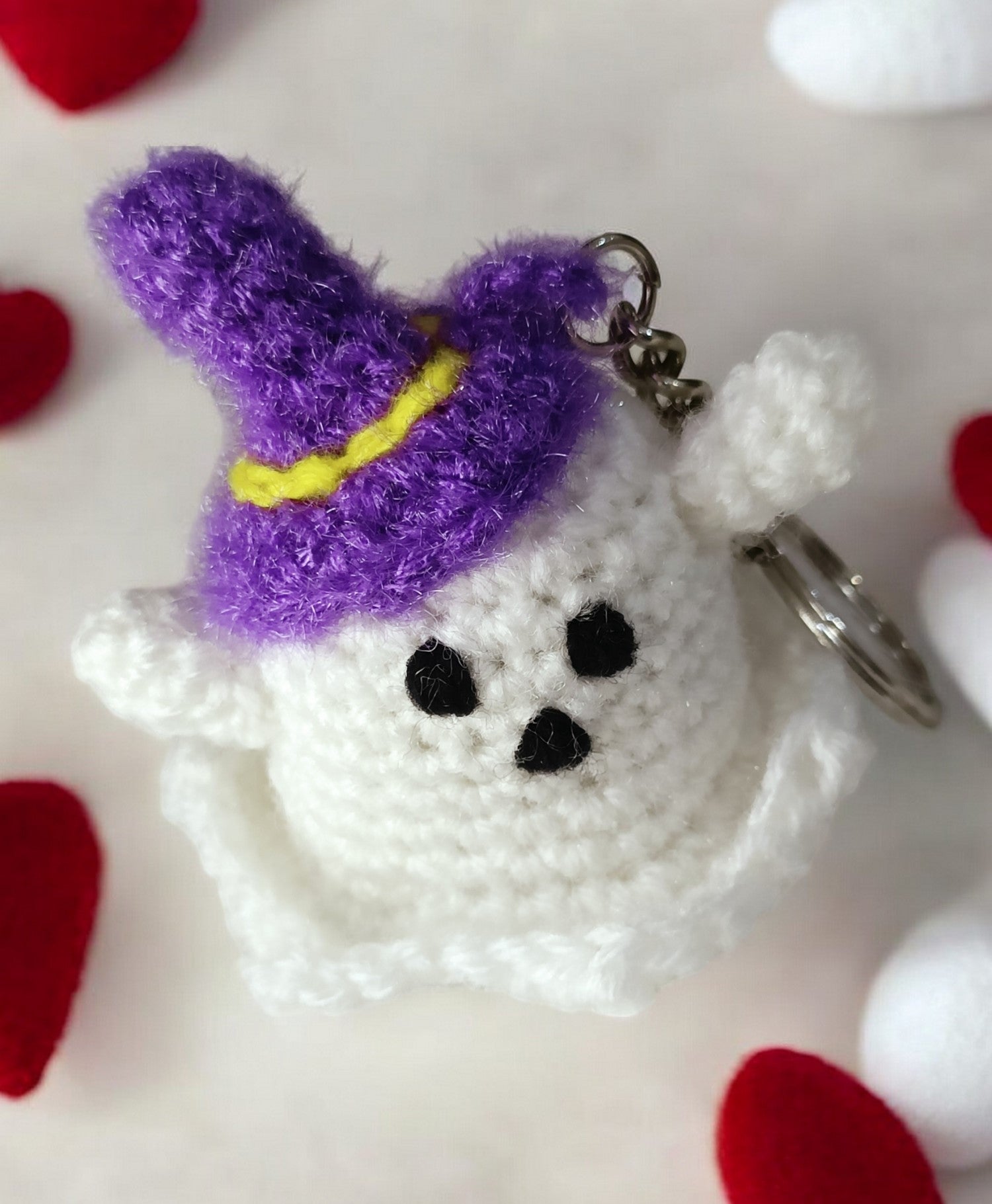 •Cute White Halloween  Design: Featuring the endearing White Halloween , this handmade crochet plush keychain captures the timeless charm of the beloved character in a cute and huggable form. Meticulously crafted with the artistry of handmade, each keychain is a unique creation, showcasing the skill and passion of the artisan.