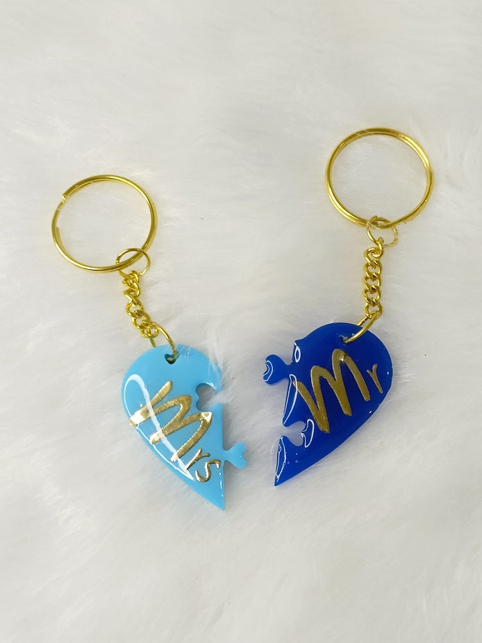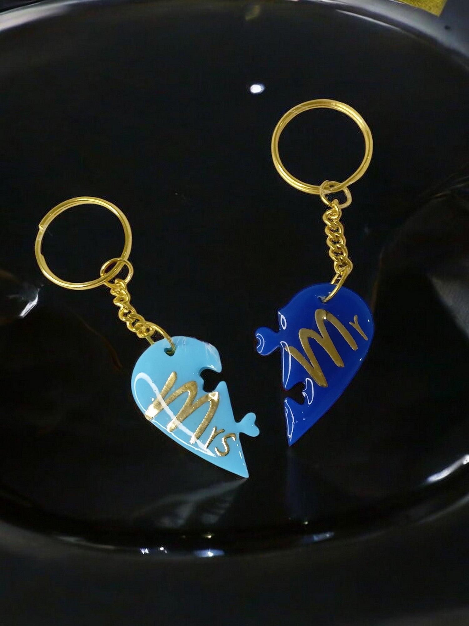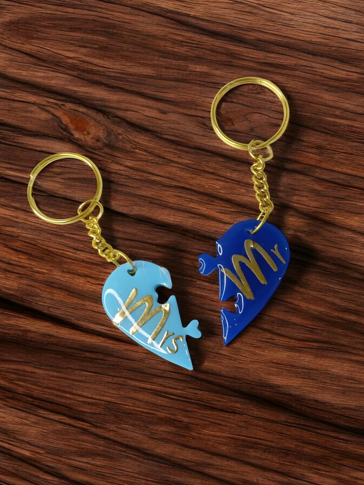 Haute Crafts "Mr & Mrs" Theme Keychain - Resin Alphabet Initial Letter Keychain Key Ring for Women Girls Purse Handbags, Bike, Car Keyring.Home, Small Gifts