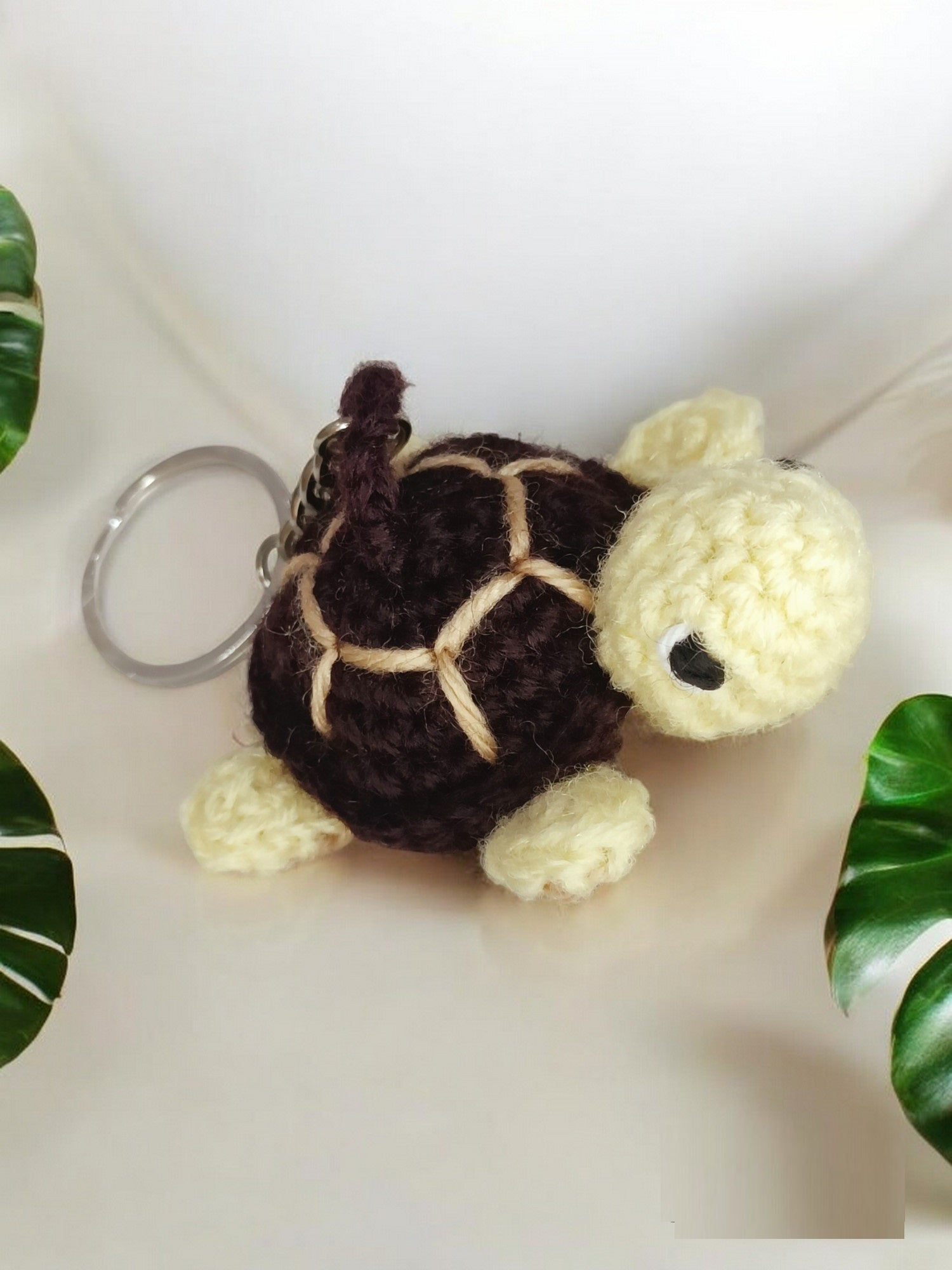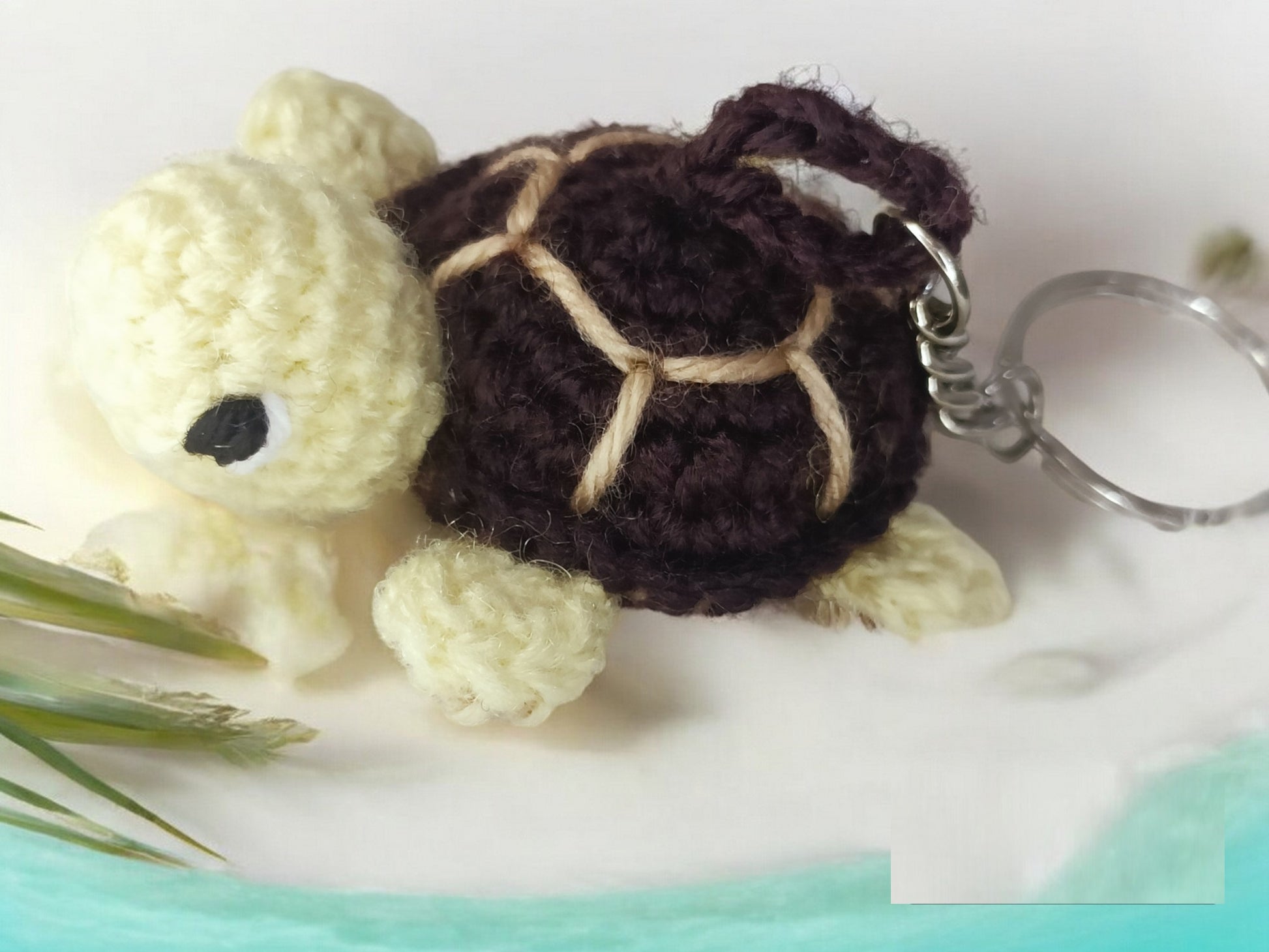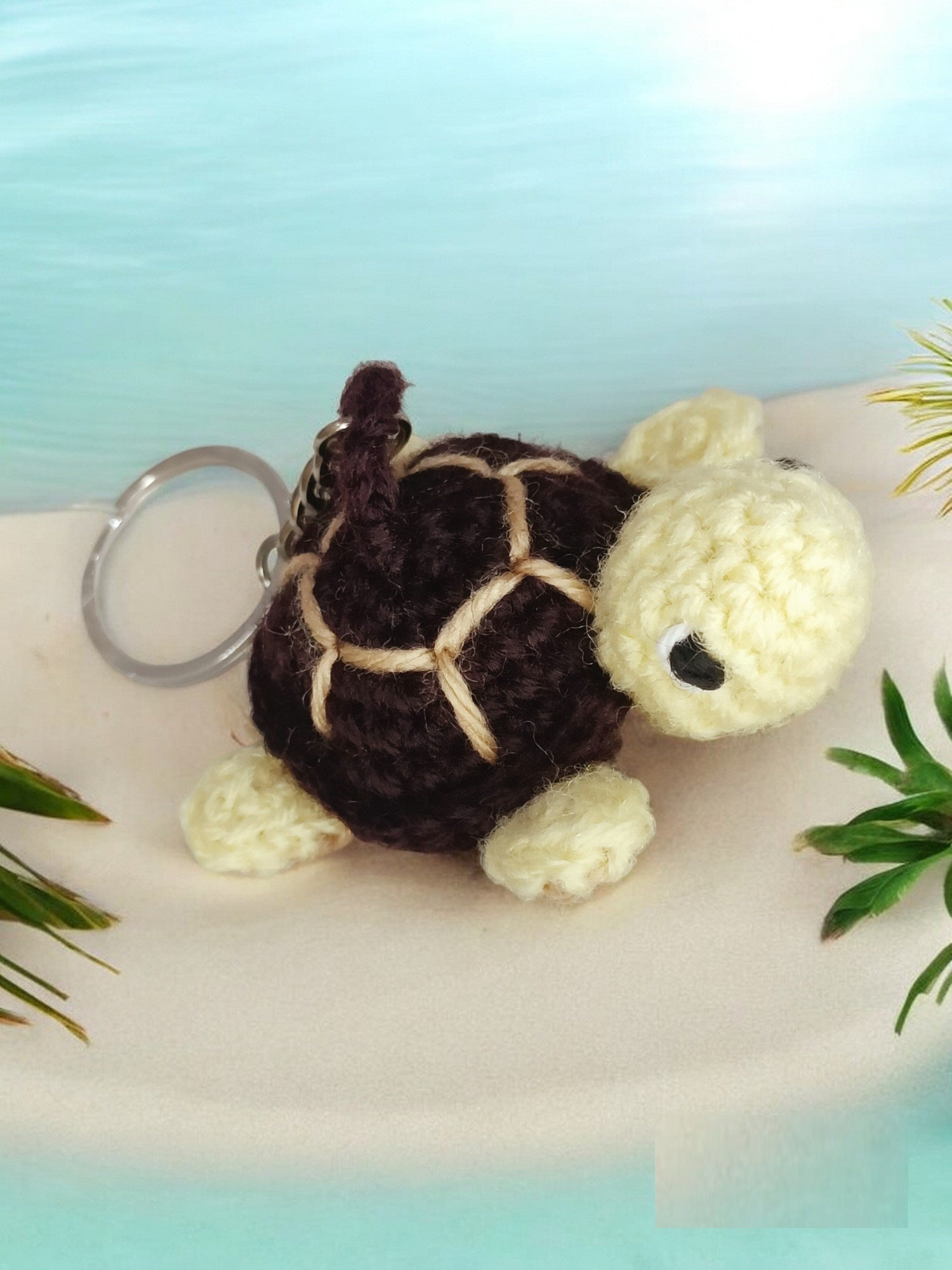 Haute Crafts Off White & Brown Handmade Crochet Tortoises Keychain & Toy for kids (Washable Keychain/toy)