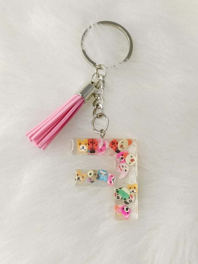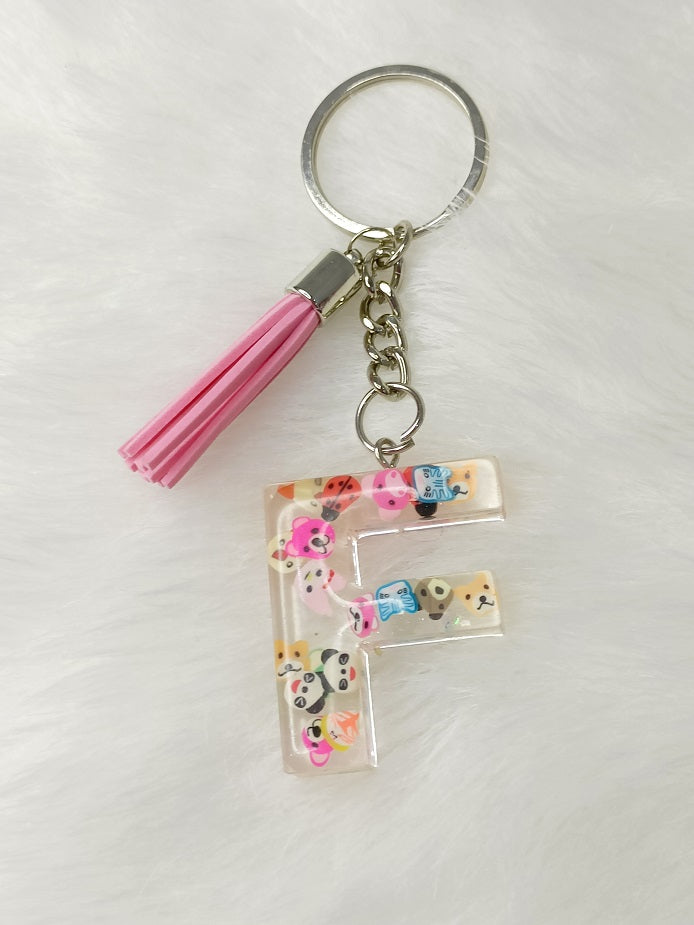 Haute Crafts Teddy Bear Theme ("F")- with Tassel, Resin Alphabet Initial Letter Keychain Key Ring for Women Girls Purse Handbags, Bike, Car Keyring ("F")