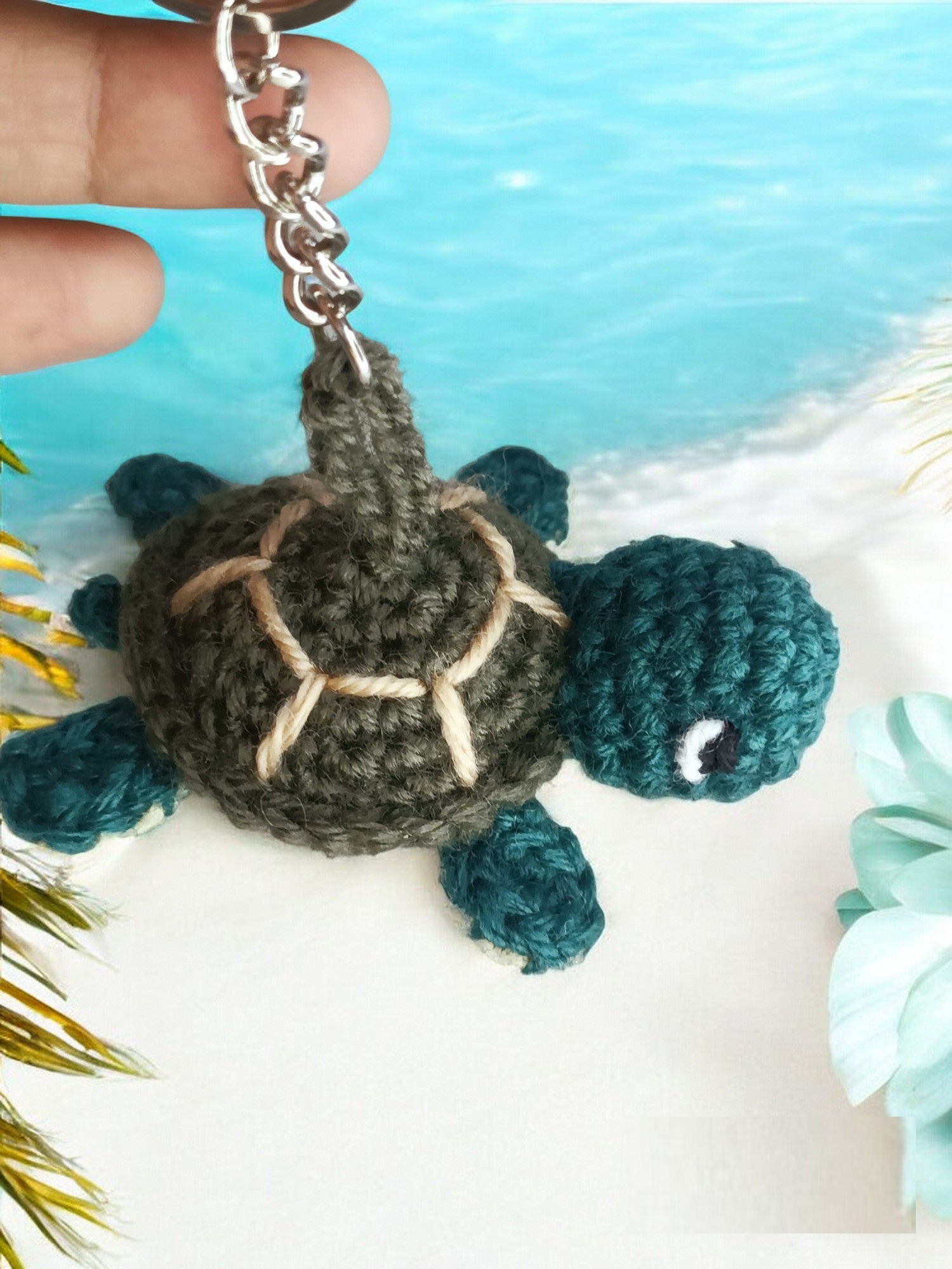 Haute Crafts Turquoise & Brown Handmade Crochet Tortoises Keychain & Toy for kids (Washable Keychain/toy)