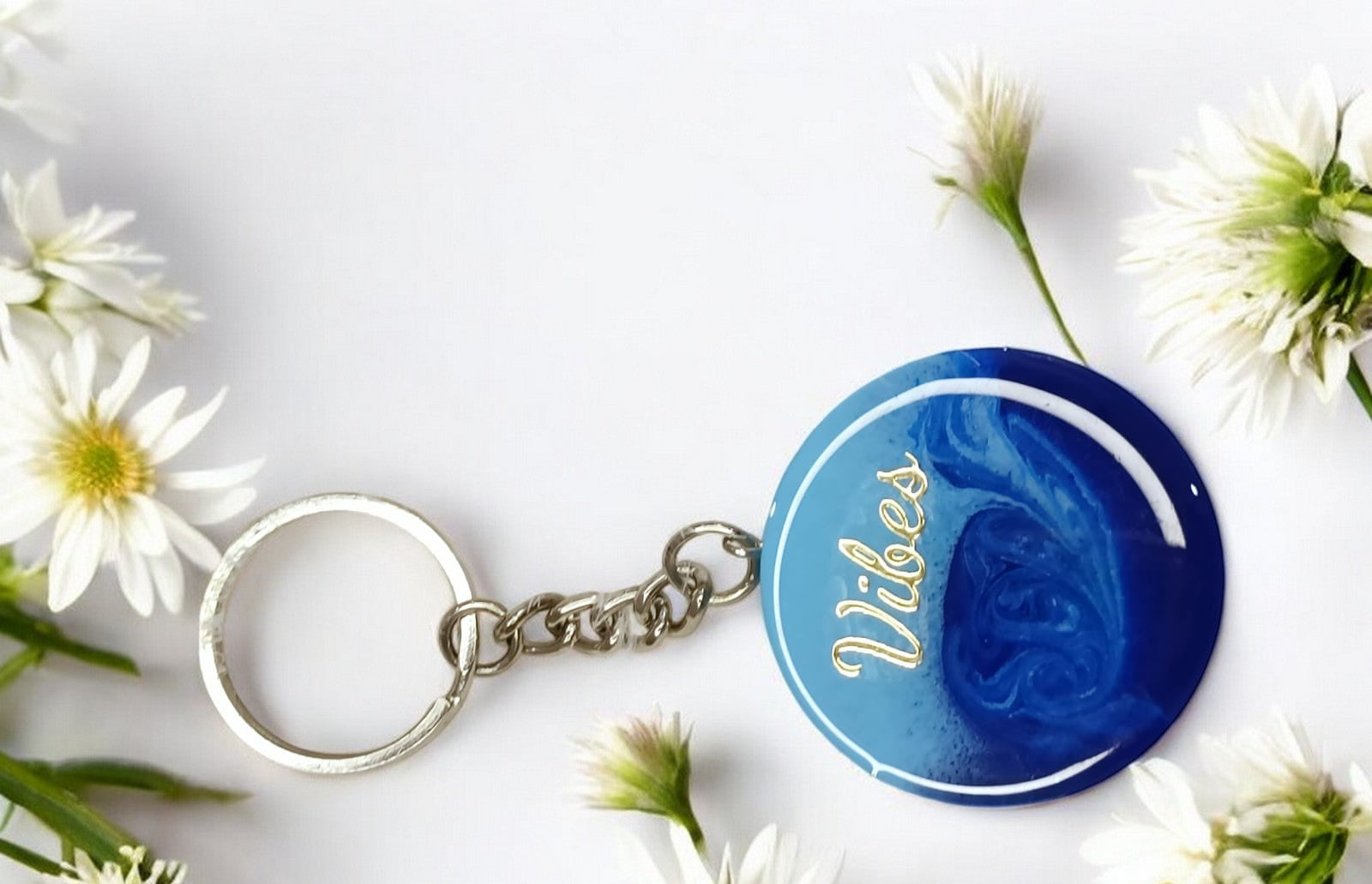 Haute Crafts "Vibes" Theme Keychain - Resin Alphabet Initial Letter Keychain Key Ring for Women Girls Purse Handbags, Bike, Car Keyring.Home, Small Gifts