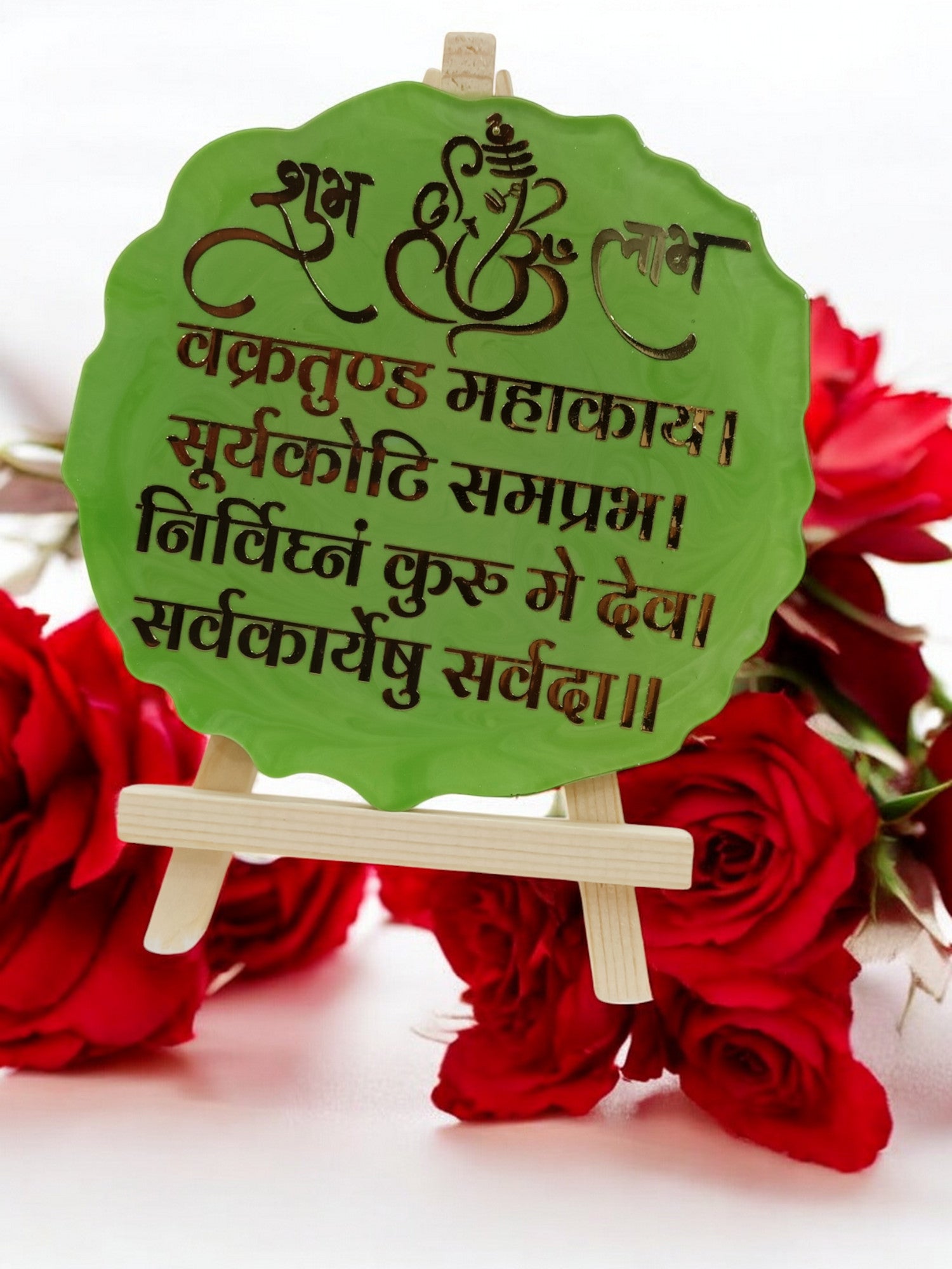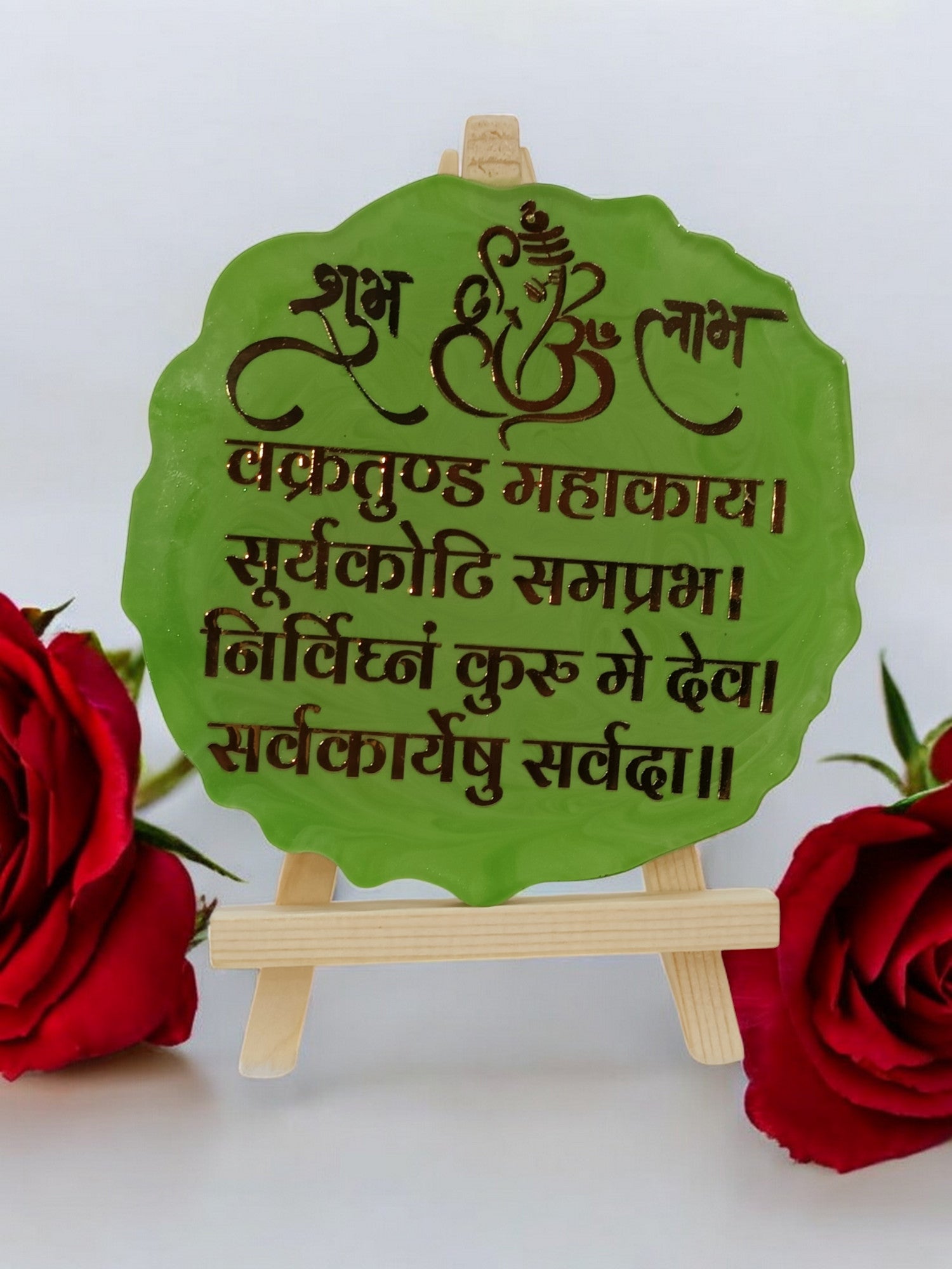 Resin Handcrafted Ganesha Mantra Resin Art Frame with Stand | Diwali Gifts, Religious gifts | Handmade with Resin (FREE STAND) (Pack of 1, 13 cm Height)